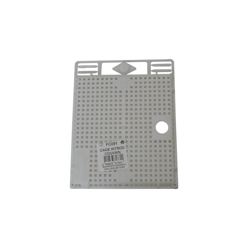 Cette cage d'introduction de reines est à fixer directement sur le cadre de couvaint naissant.