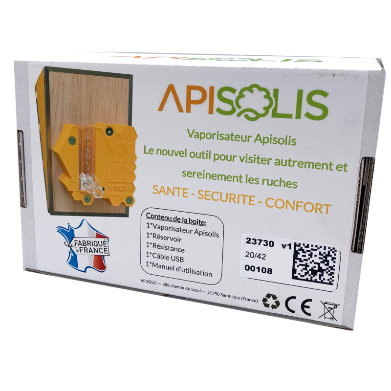 L'Apisolis c'est un enfumoir à vapeur à base d'actifs issus d'huiles essentielles qui élimine les risques d'incendies, les inhalations toxiques de la combustion et les brûlures.