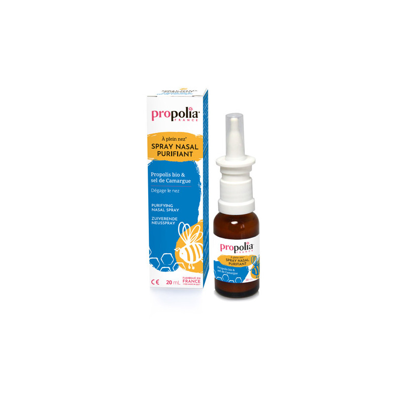 Le spray nasal purifiant "A plein nez" de chez Propolia est à la propolis, au soufre et a l'eucalyptus bio.