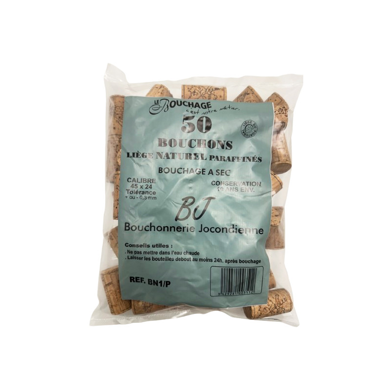 50 bouchons en liège naturels paraffinés pour bouchage à sec.