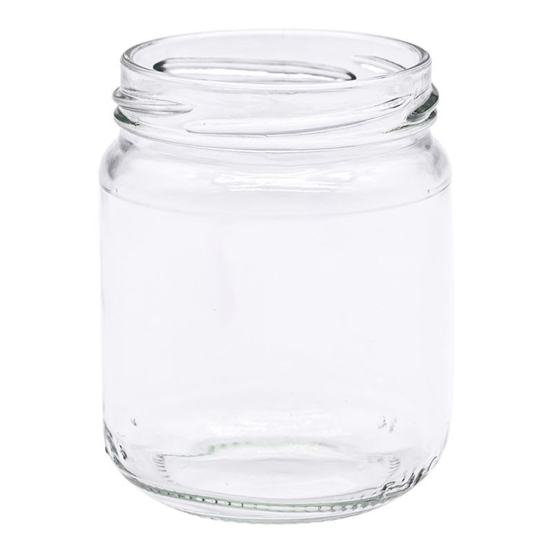 Ce pot en verre cylindrique est destiné à la conserve alimentaire. Il a une capacité de 228 ml et peut contenir jusqu'à 250 g de miel.