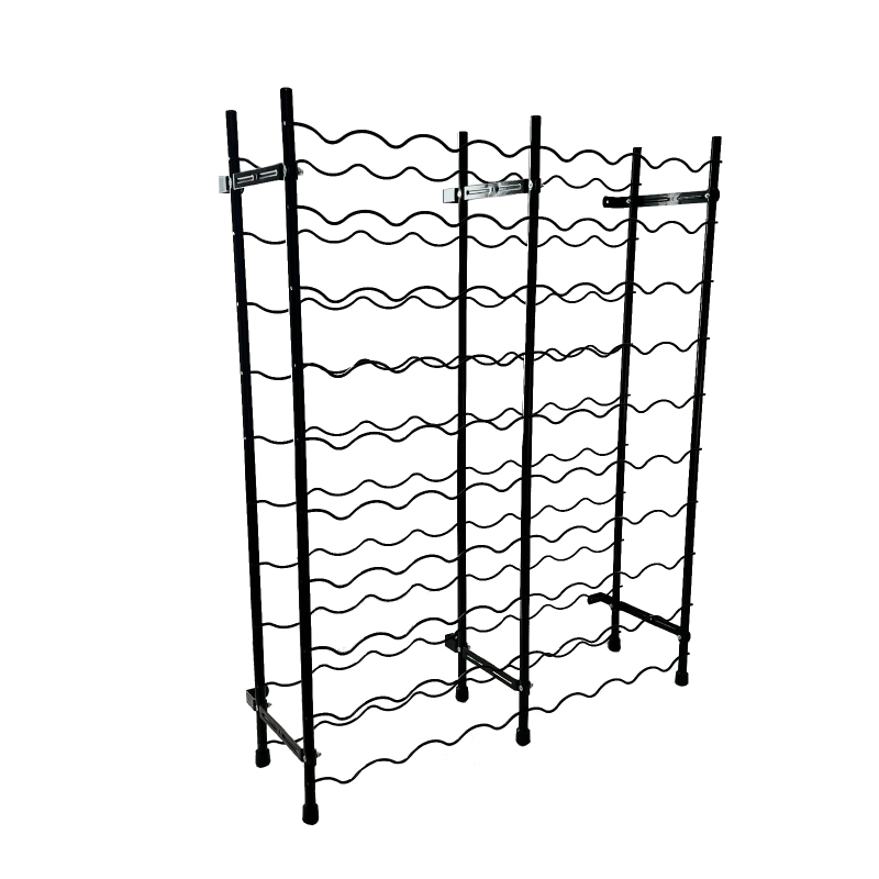 Ce casier en métal pour 80 bouteilles, robuste et durable grâce à sa construction en tubes et fil d'acier, bénéficie d'une peinture epoxy pour une protection accrue. C'est un produit pratique pour le stockage des bouteilles.