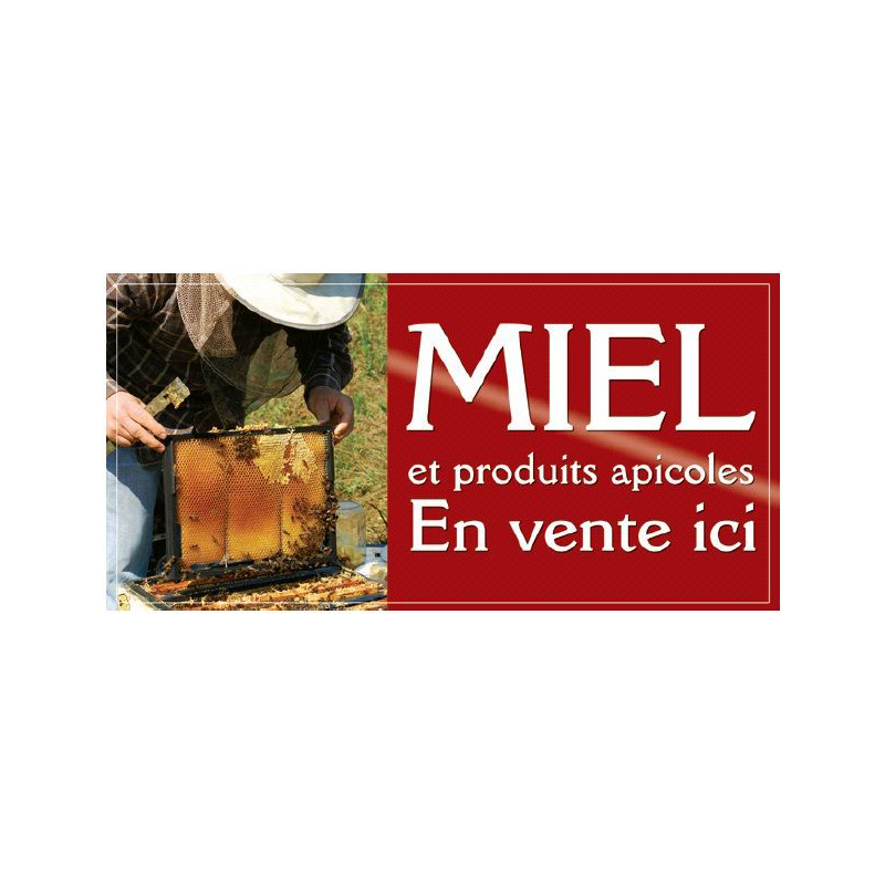La bannière contient l'inscription "Miel et produits apicoles en vente ici".